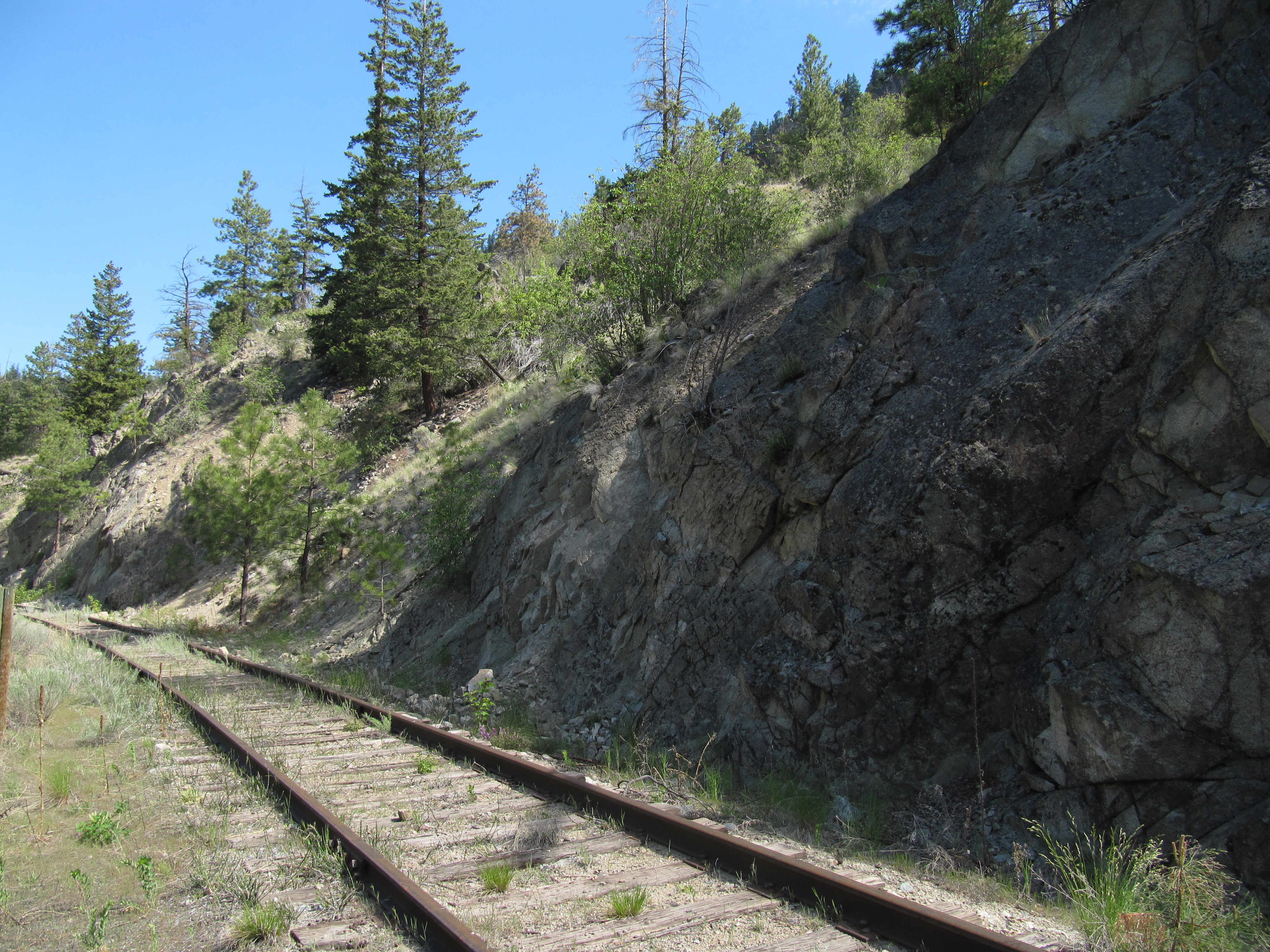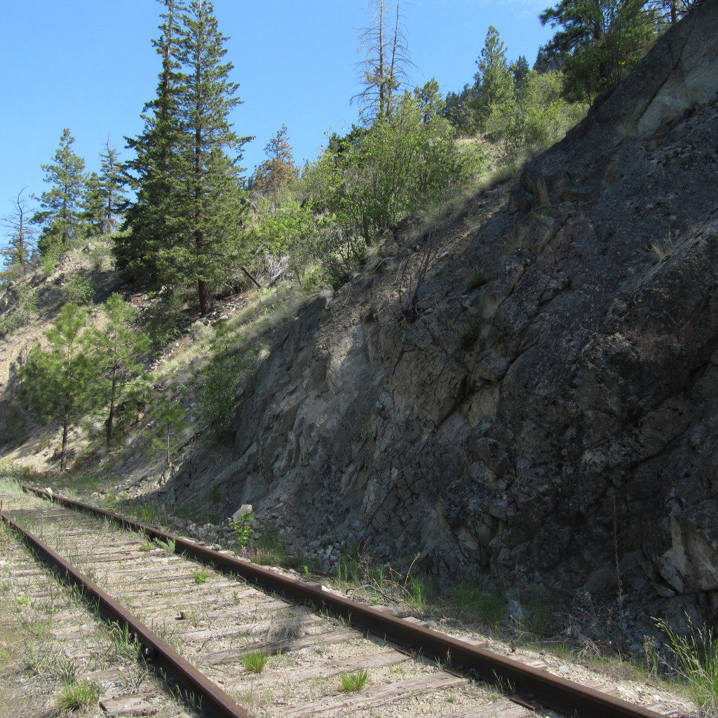 You may wish to note that although the KVR between Summerland and Penticton is not yet part of the TCT, it is certainly possible to travel along it for the time being. South on Canyon View, the road crosses the active railway – but a trail follows the railway heading east and turning south. The train stops at the deep canyon at Trout Creek, and the KVR continues (unpaved) downhill, 11 km south to Penticton.