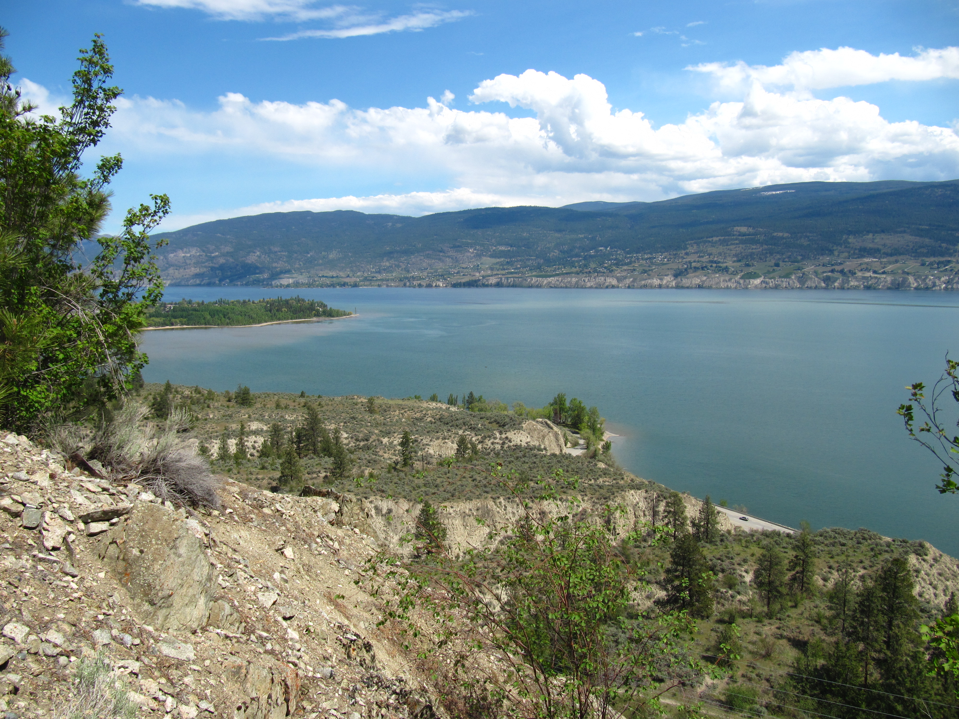 The KVR corridor between Summerland and Penticton is currently in the process of being returned to the Penticton Indian Band, and we are hopeful that it will one day become part of the KVR/TCT, but for the time being is not. The official route therefore follows Highway 97 south into Penticton. In order to reach the highway, continue downhill on Hillborn (now called Happy Valley) as it swings north. Turn right on Gartrell which continues to the highway, via either Arkell or Tait.