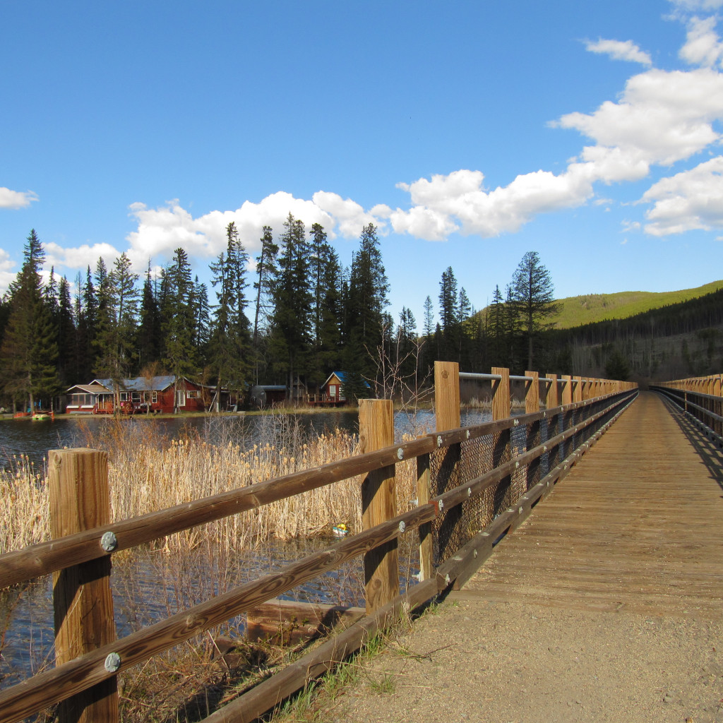 From Osprey Lake, the trail surface begins to improve over the next 42 km to the outskirts of Summerland, where trail users will leave the rail corridor – a tourist train is still active on the line within Summerland.